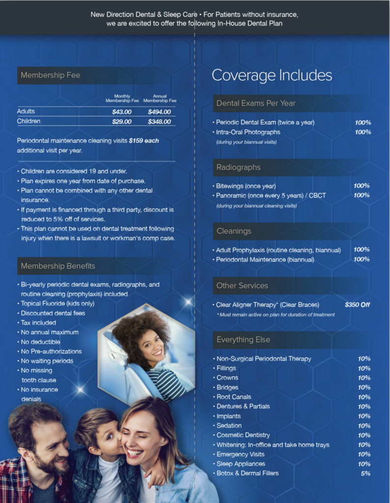 Learn about the Dental Membership Plan offered at New Direction Dental